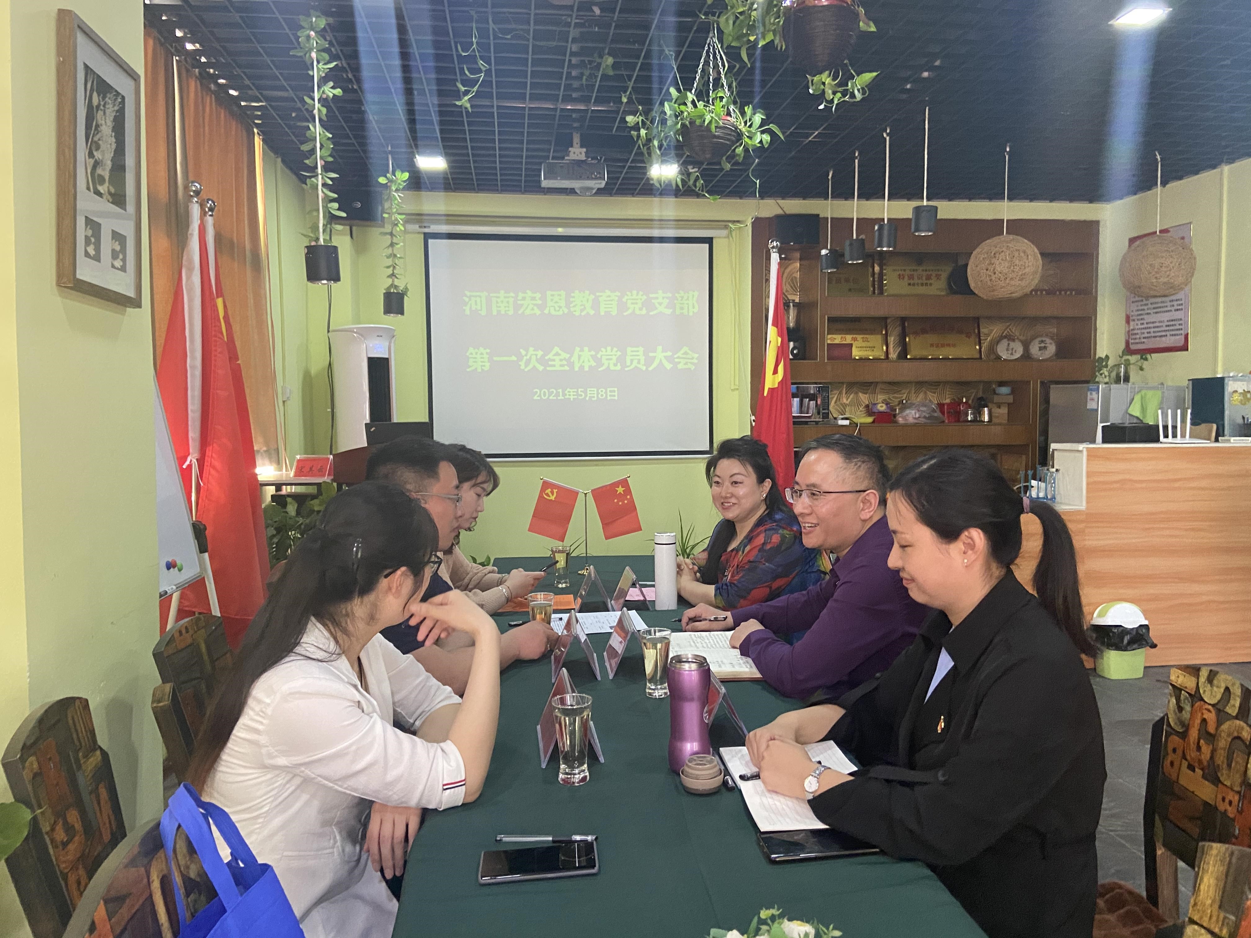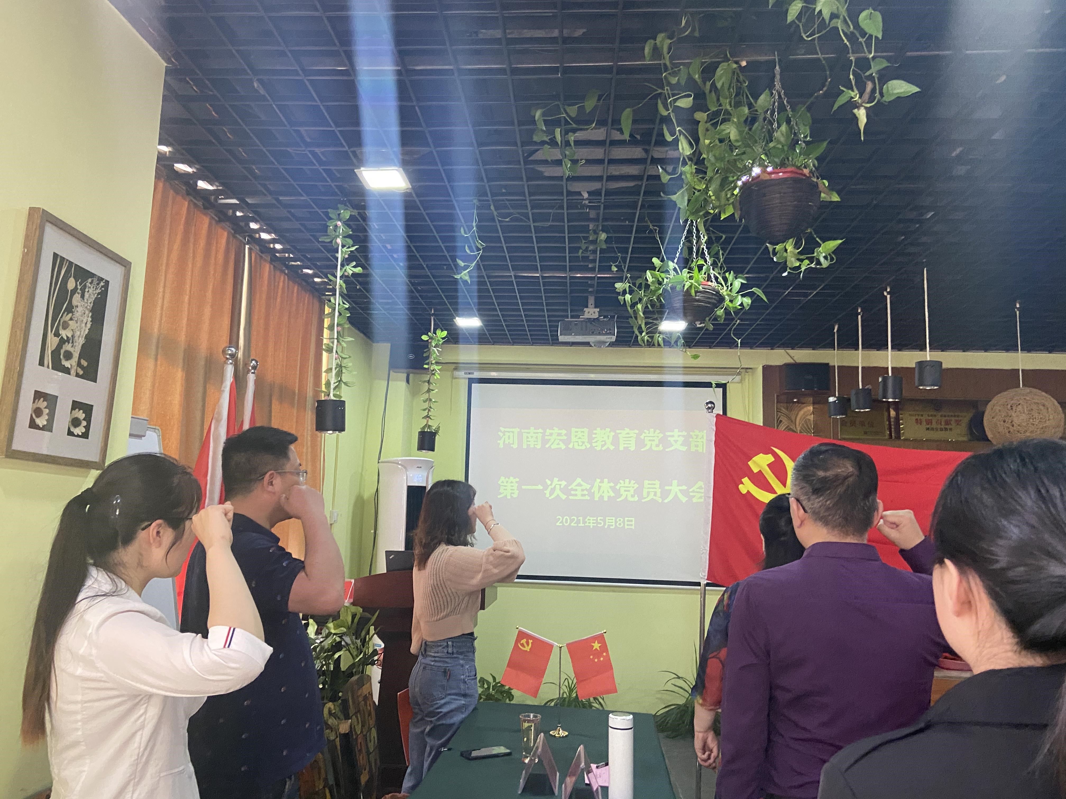 2021年(nián)5月8日(rì)下午三點在河南九慧教育科技有限公司碧沙崗總部黨員(yuán)活動室隆重召開了河南(nán)宏恩黨支部第一次全體(tǐ)黨員(yuán)大(dà)會