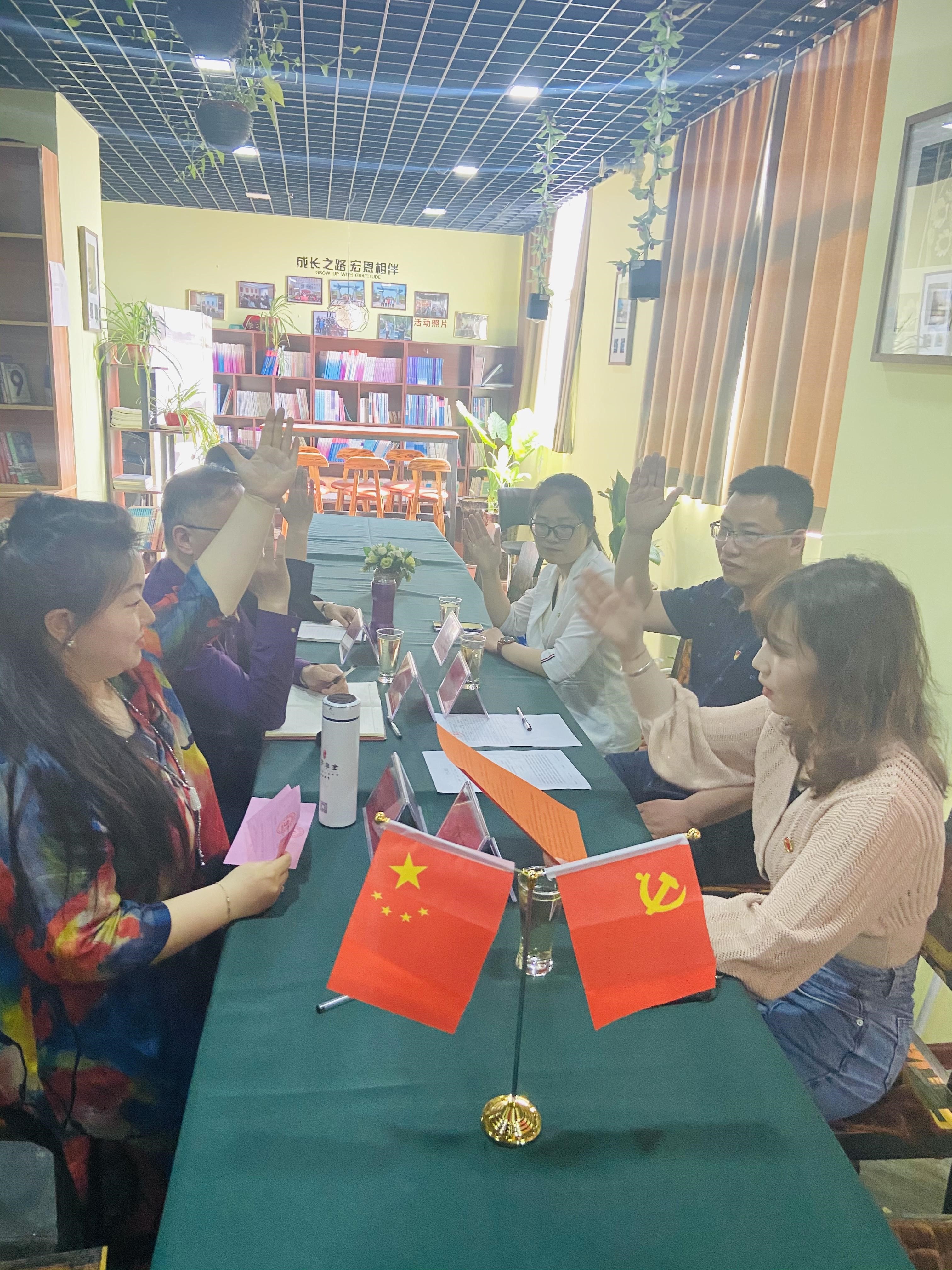 會議(yì)上全體(tǐ)黨員(yuán)對河南(nán)宏恩科(kē)技有限公司的黨支部書(shū)記進行了選舉投票,經會議(yì)全體(tǐ)黨員(yuán)同意,由耿雪玲擔任計(jì)票員(yuán)、陳鵬擔任監票員(yuán),全體(tǐ)黨員(yuán)采用無記名投票的方式填寫選票。